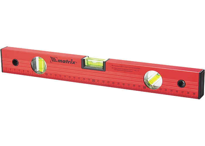 - Уровень алюминиевый, 800 мм, 3 глазка, красный, линейка// MATRIX