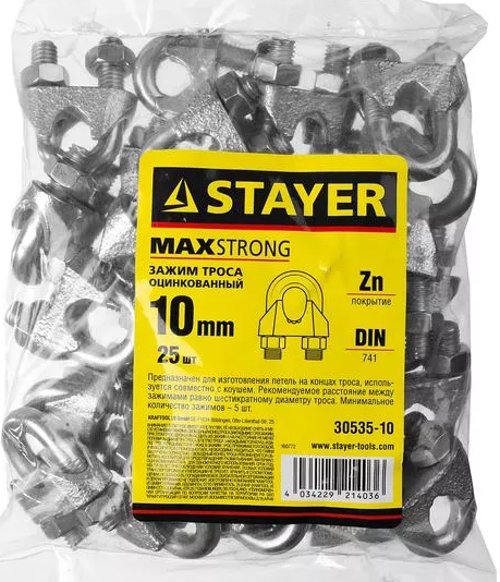 - Зажим троса DIN 741, 10мм, 25 шт, оцинкованный, STAYER