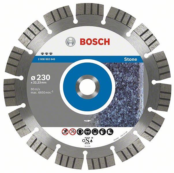 Алмазный диск Best for Stone Bosch 2608602646 является сменным элементом угловых шлифмашин. Применяется при резе твёрдого камня, такого как гранит или армированный бетон. Данный диск позволяет выполнять пропилы быстро, чисто и точно без больших усилий. Увеличенная высота новых режущих сегментов «Speed Stripes» снижает боковое трение и тем самым повышает рабочую скорость и срок службы диска. Алмазный диск Bosch изготовлен в соответствии с самыми жёсткими стандартами качества EN13236 и OSA.