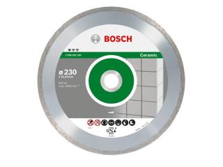Диск алмазный отрезной Bosch 2.608.602.205 по керамической плитке, серия Professional ECO. Размеры 230х2,4х22,23 мм (Внешний диаметр-Толщина-Посадочный диаметр). Обеспечивает аккуратный рез керамической плитки без риска сколов. Отрезной край диска образуется спеканием.