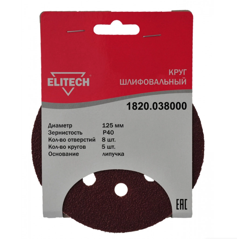 Круг шлифовальный,ф125мм,P40,5шт,липучка,8отверстий