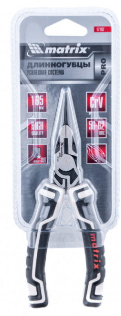 - Длинногубцы прямые 165 мм, усиленная система, PRO// Matrix